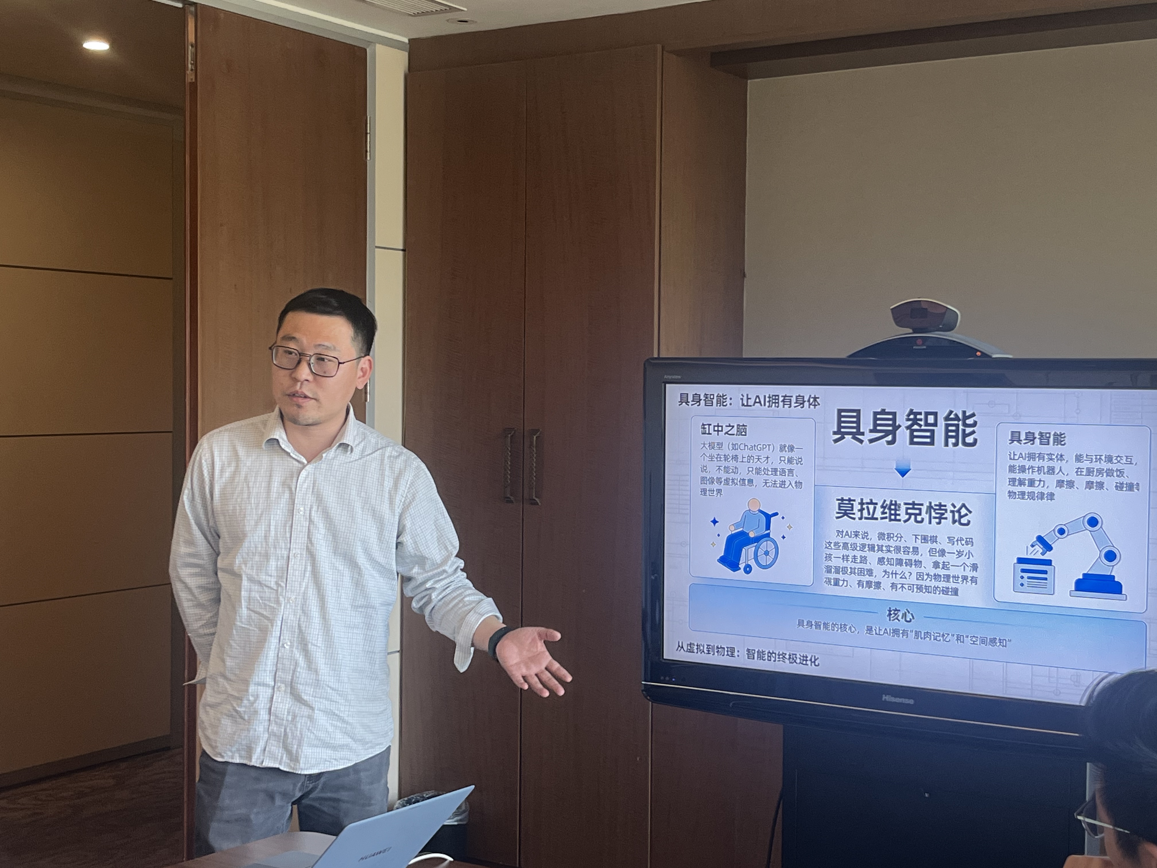 智子引擎CTO刘光镇以《具身智能——从屏幕里的AI到工厂里的生产力》为题,系统解读具身智能核心内涵。他指出,具身智能因大模型技术突破迎来新一轮发展,核心是实现感知—决策—行动闭环,由本体硬件与具身大脑双轮驱动,并结合物流自动化分拣机械臂等落地案例,展现AI从虚拟走向实体的生产力变革。