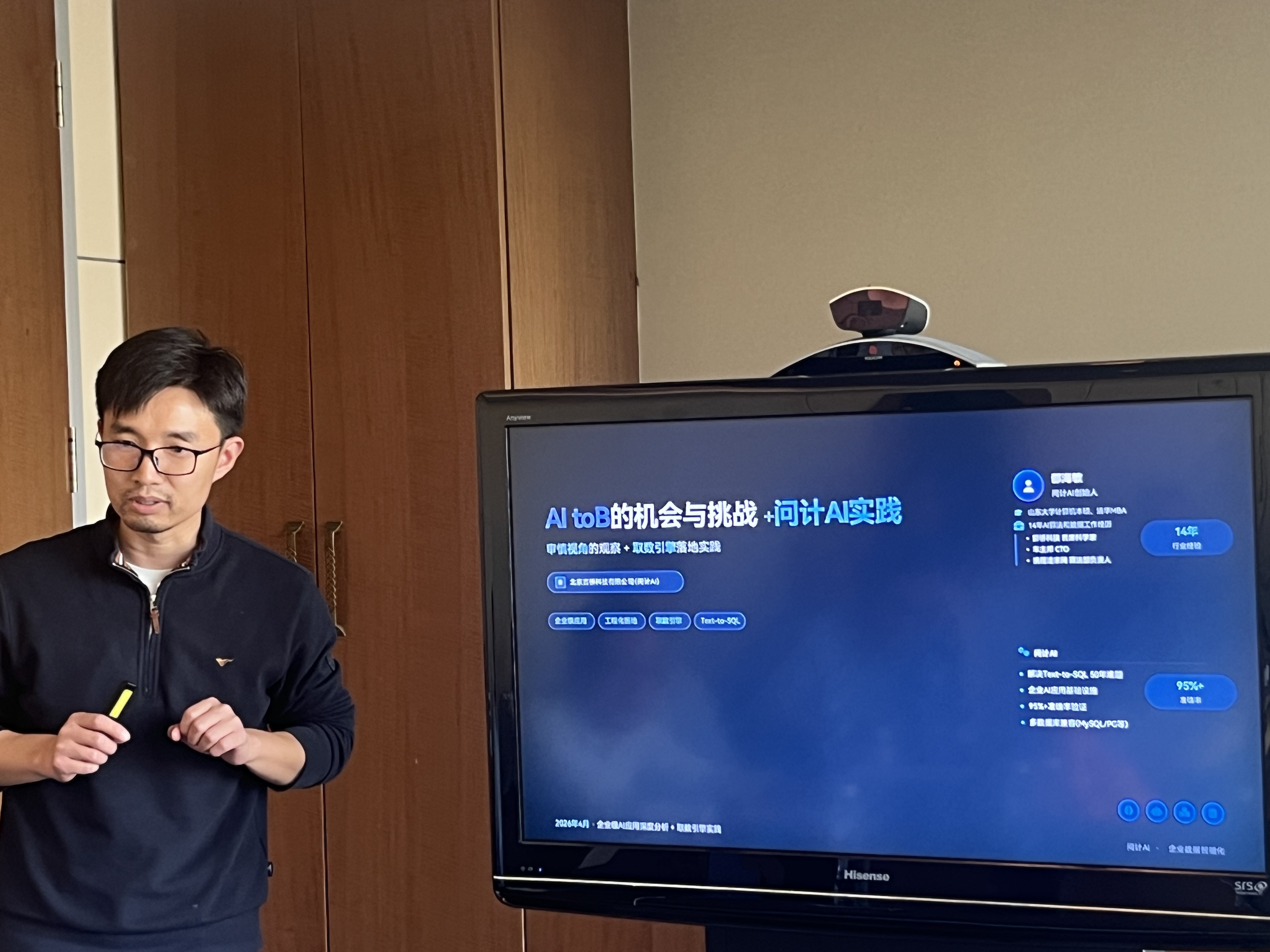 问计AI创始人邵海敏聚焦AI ToB机遇与挑战,点明数据质量、智能体稳定性、ROI压力是当前落地三大核心痛点。他提到,ToB AI正处于POC向规模化落地过渡阶段,文本密集、高频、易验证场景率先跑通;并分享问计AI在提升大模型数据库取数准确率方面的创新解法,为企业AI落地提供务实路径。